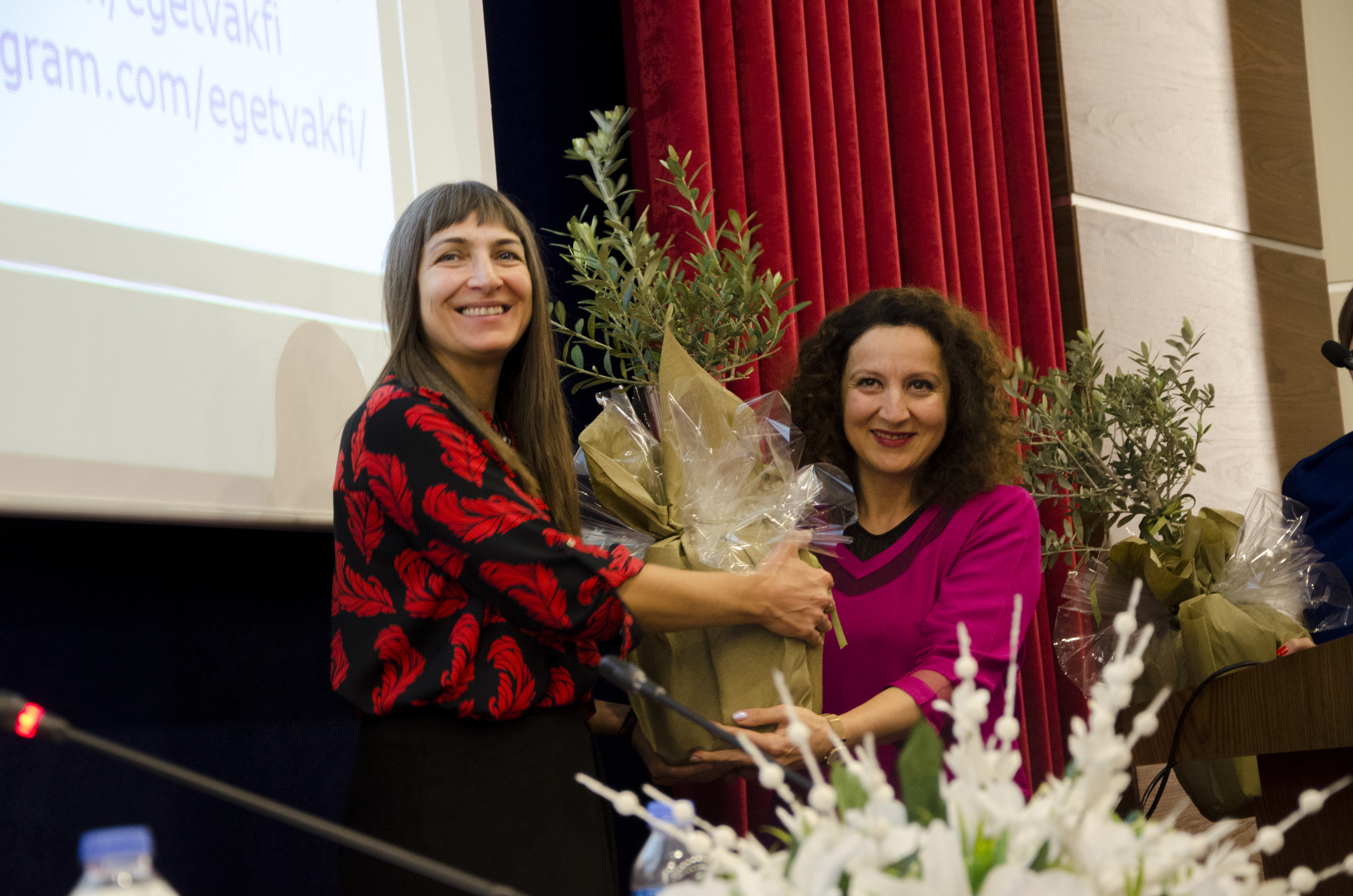 EGET Kurucusu ve Mütevelli Heyet Başkanı Safai Özer de, yeryüzünde doğaya zarar veren tek canlının insan olduğunu vurguladı. İnsanların “doğa ile savaş” halinde bir davranış sergilediğini vurgulayan Safai Özer, insanların doğa ile ilişkilerinde kendilerini odak aldıklarını, oysa uyumun aranması gerektiğini kaydetti. “İnsanlar, ağaçlar bana hizmet etsin, bitkiler bana hizmet etsin, yeryüzünün canlıları bana hizmet etsin derken, azgınlığımız yeryüzünde, en azından ülkedeki herkes bana hizmet etsin bir anlayışa neden oluyor gönüllerimizde. Sonra da barış umuyoruz.” diyen Safai Özer, “Bir şeylere teslim olmadığımız sürece barışı sağlayamayız. Doğayı teslim almaya çabaladık ve başaramadık. Doğa kıs kıs gülüyor, sonunda teslim alacağım diyor ve o (doğa) teslim alıyor. Bu savaşı bitirmemiz, doğaya teslim olmamız gerekiyor. Ona (doğaya) saygı duyma anlamında teslim olmalıyız, doğadan hiçbir şey talep etmeme anlamında teslim olmaktan değil.” dedi.